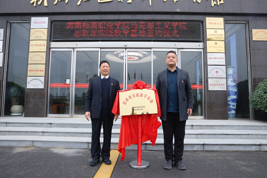 致辞结束后,双方代表李金波与苏东生郑重签署《实践教学基地合作协议》,明确了“资源共享、优势互补、共同发展”的合作方向。随后,两人共同为实践教学基地揭牌——红布缓缓落下,“河南物流职业学院实践教学基地”牌子正式亮相,现场掌声雷动,气氛达到高潮。